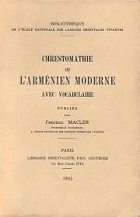 Chrestomathie de l'arménien moderne avec vocabulaire [Texte imprimé] / Frédéric Macler Publication:Paris, 1932, 13, rue Jacob : Geuthner, Paris, 208 bis, rue Lafayette : MassisDescription : 1 vol. (399 p.) ;